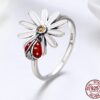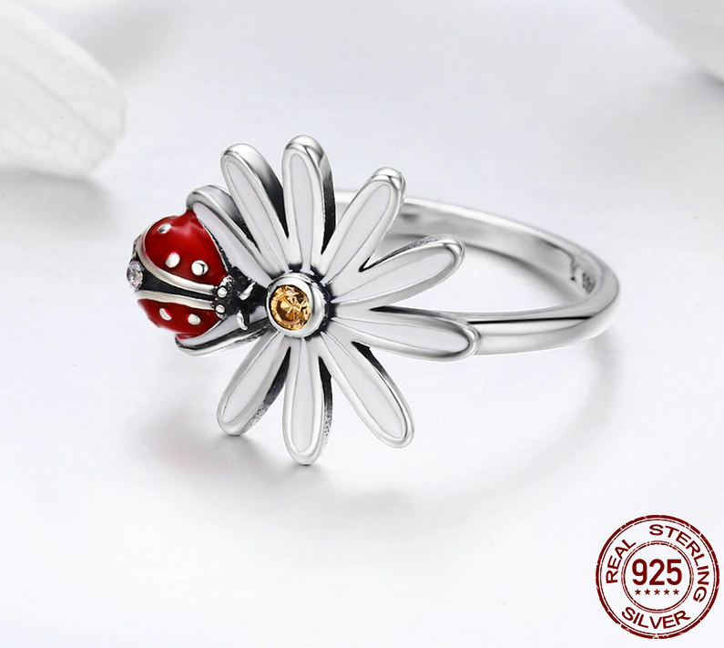 Inel Lady Bug din Argint marcat 925, colectia de primavara. Cu piatra de culoarea chihlimbarului montata central, discret.